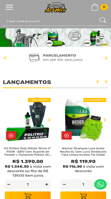 95%aqui você encontra tudo para estética automotiva. as melhores marcas com os melhores preços. cursos de polimento e lavagem ecológica, certificados e professores com anos de mercado.