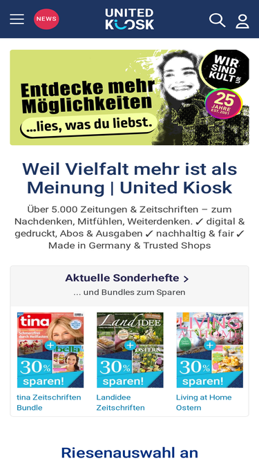 84%Jetzt zum Newsletter von United Kiosk anmelden: Artikel der Woche 🔖 Zeitschriften-Tipps 🎁 Rabatt-Angebote 🏷️