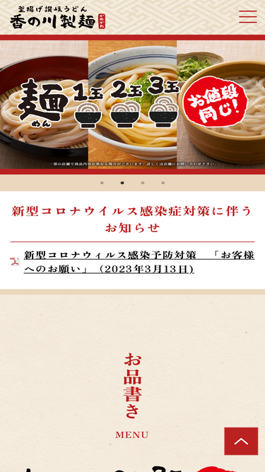 89%セルフうどん「香の川製麺」を運営する株式会社フレンドリーのウェブサイトです。香の川製麺は「うちたて」「ゆでたて」を多彩なお味で提供します。