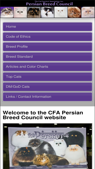 100%the persian breed council website, including history of the breed, breed profile, breed standard, top scoring cats, top distinguished merit cats, color charts, and articles relating to the breed