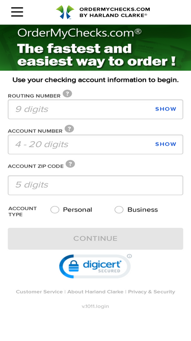 98%ordermychecks.com - the fastest and easiest way to order checks! replenish your check supply; your checks are shipped to the same address as your prior check order. for account holders of banks and credit unions that use harland clarke