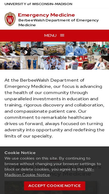 100%At the BerbeeWalsh Department of Emergency Medicine, we endeavor to advance health and health equity through compassion, innovation, and leadership — to build a better for all.