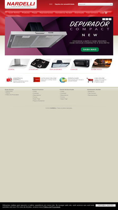 84%a nardelli conta com a experiência de mais de 20 anos no mercado de eletrodomésticos, e é uma das líderes em fabricação de fornos elétricos, trempes seguras, fogão seguro, fogões de bancada (cooktops) e coifas.