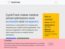 54%cycletrack is a free system for tracking and visualizing medical school applications while crowdsourcing data to make admissions more transparent.