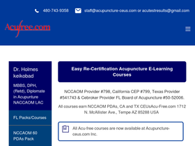 acufree.com is an education and publishing site for professionals working with acupuncture who need ceu's/pda's for recertification,and would enjoy the ease and professionalism of distance learning. acufree.com includes other health modalities to educate the professional, and enlighten the public on issues of importance to their health. video tapes, books, and educational support materials include the health areas of acupuncture, sars, smallpox, anthrax, all projects are based on solid research, professionally produced, and geared to help the professional and layperson alike deal with public health, behavorial health and integrative medicine through expert education. acufree.com is dedicated to the best in distance learning and new educational methods. we are here to help you stay safe and in tune with the world of health.