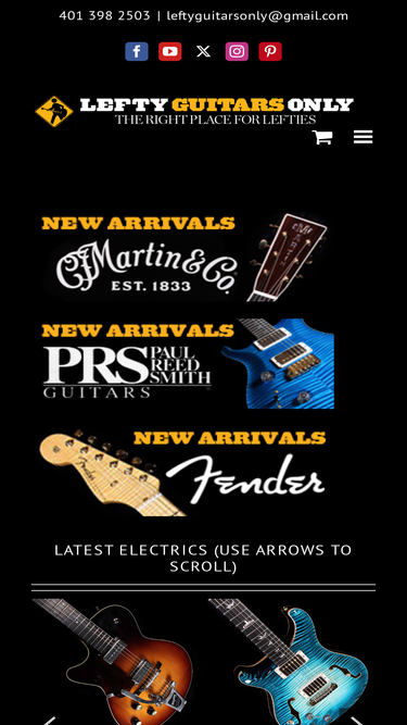 88%Policies Location Lefty Guitars Only is located in Scituate MA, about 20 miles south of Boston. Lefty Guitars Only Scituate MA (781) 378 2075 sales@leftyguitarsonly.com Hours Business hours are 10-6 pm Mon-Fri. We respond promptly to all emails. Showroom hours are by appointment only, Monday through Saturday. Please call before you come, we want