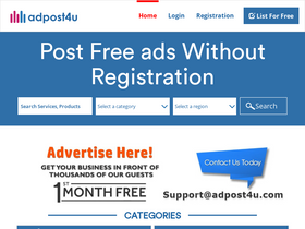 76%post your free classifieds and advertisements without registration on adpost4u.com. buy and sell products and services on adpost4u in minutes. browse through the listed classifieds or post free ads now. post classifieds in india, usa, australia, canada and uk countries.