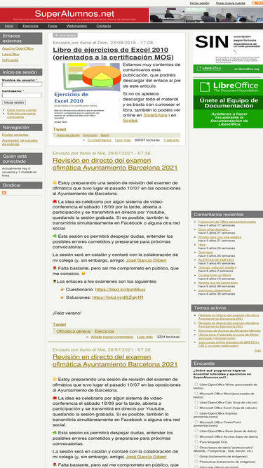 100%superalumnos.net ofrece recursos para estudiantes y docentes de ofimática, con una dedicación especial a entornos de software libre. en el sitio se mantiene el "recetario de openoffice.org" y un directorio con abundantes ejercicios de ofimática.