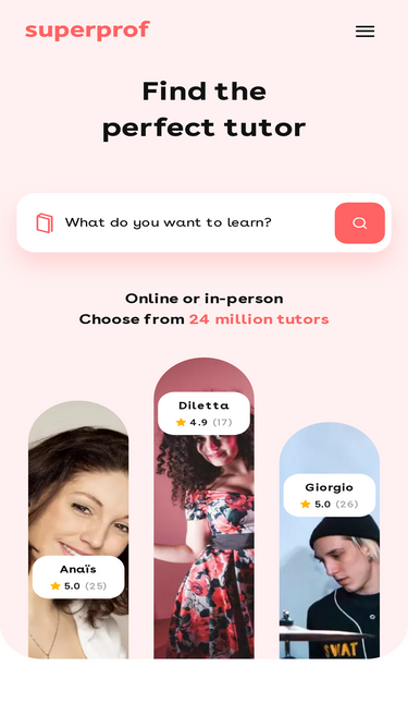 100%Find your personal tutor for individual or group lessons from over 100,000 profiles. At your home, the tutor's home, in a specified place or even online: over 80,000 students have already trusted us.