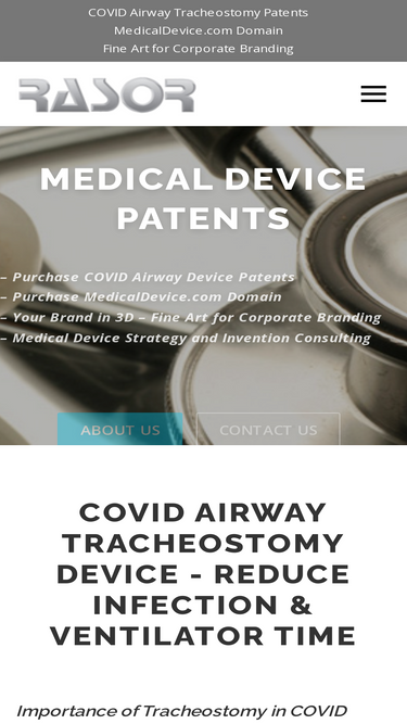 100%Purchase COVID Airway Tracheostomy Patent; Purchase MedicalDevice.com Domain; Your Brand in 3D – Fine Art for Corporate Branding; Medical Device Strategy & Invention Consulting