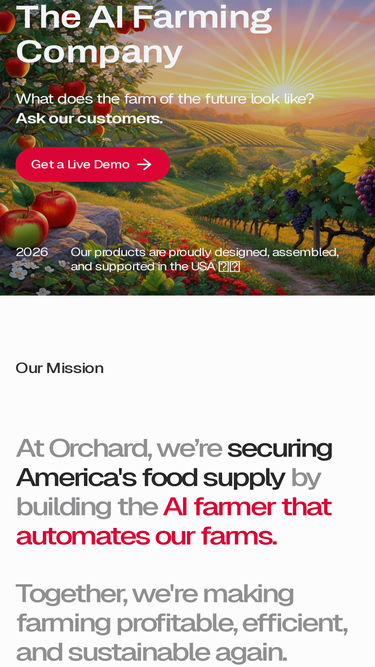 76%Orchard is securing America's food supply by building the AI Farmer that automates our nation's farms.