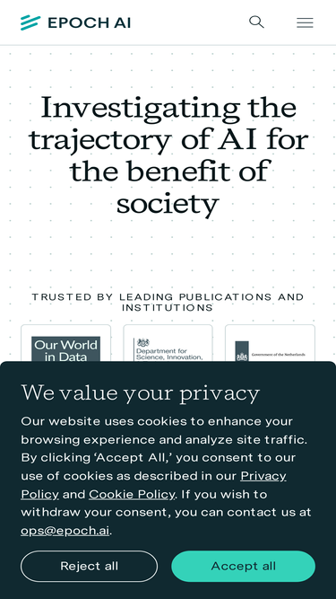 59%Epoch AI is a research institute investigating key trends and questions that will shape the trajectory and governance of Artificial Intelligence.