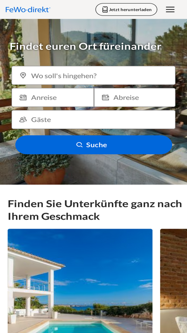 96%Finde dein ideales Ferienhaus bei FeWo-direkt - Marktführer im Bereich Ferienwohnungen. ✓2+ Mio. Ferienhäuser weltweit ✓19+ Mio. Bewertungen ✓Sichere Online-Zahlung