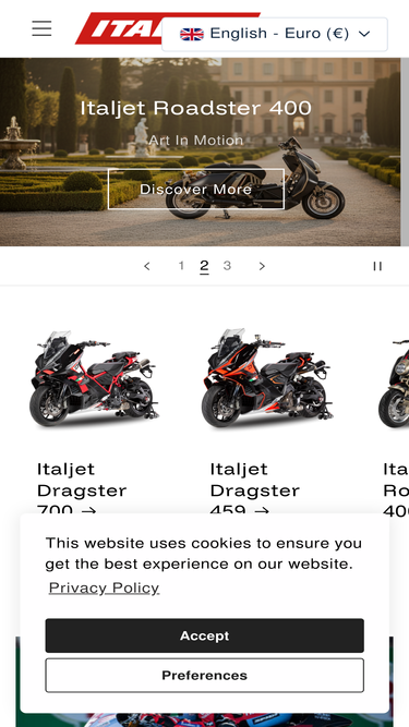 85%Italjet – Art In Motion. Official home of the Dragster 700 Twin, Dragster 459 Smart Shift, Dragster 125/300 and Roadster 400. Italian design, racing heritage, and Motor Valley engineering since 1959.