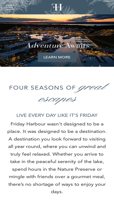 84%We are an organization dedicated to personalized service and attention to detail. We are a community committed to enriching lives. We are a family devoted to creating memories. We are an organization, a community, a family…we are Friday Harbour. Come and be a part of the vision and be a part of making the dream come true. Permanent and seasonal opportunities available.