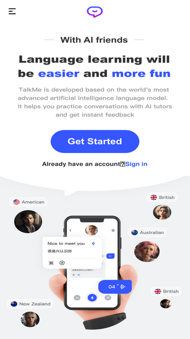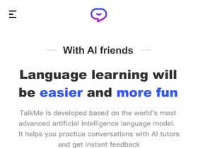 76%Master languages with TalkMe AI – your personal AI language tutor. Practice real conversations, get instant feedback, and enjoy AI-powered language exchange.