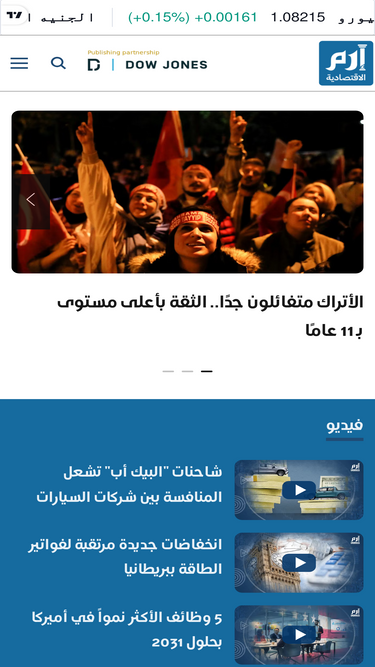 89%موقع اقتصادي إخباري شامل يقدم أخبار المال والأعمال باحترافية، وتتابعون فيه أخبار الاقتصاد والأعمال العربية والعالمية، وأسواق المال والبورصة، وأسعار العملات إضافة إلى تقارير وتحليلات شاملة حول إدارة الثروات والاستثمار والأصول المشفرة والعملات الرقمية وغيرها