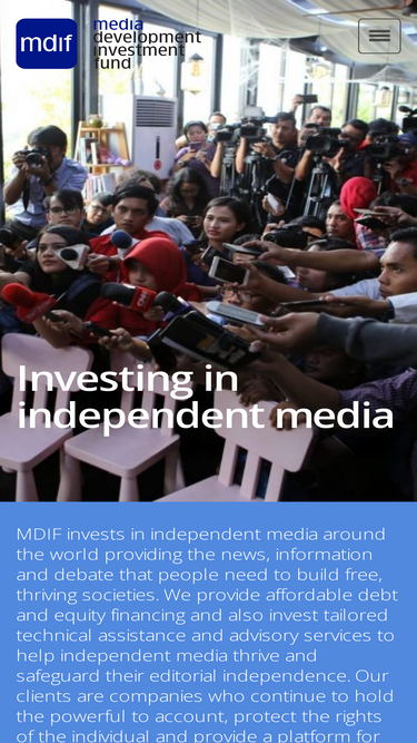 72%Investing in long-term relationships Drawing on 30 years of experience, MDIF offers clients a unique set of advantages. When you work with us, you gain: Is my company eligible for financing? We welcome applications from mission-driven media and information ventures committed to long-term sustainability. Whether you’re a digital news portal, a TV station, a journalism […]
