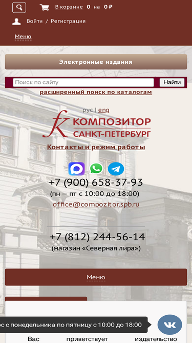 100%музыкальное издательство композитор предлагает купить ноты для фортепиано, синтезатора, гитары и других инструментов, а также книги о музыке и музыкантах, учебные пособия +7 (812) 314-50-54 санкт-петербург, ул. большая морская, 45