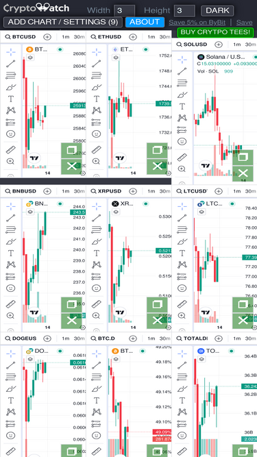 96%View multiple TradingView charts all in one screen. Supports 1x1 all the way up to 9x9 one page charts. Once your charts are configured bookmark the page to save your configuration.