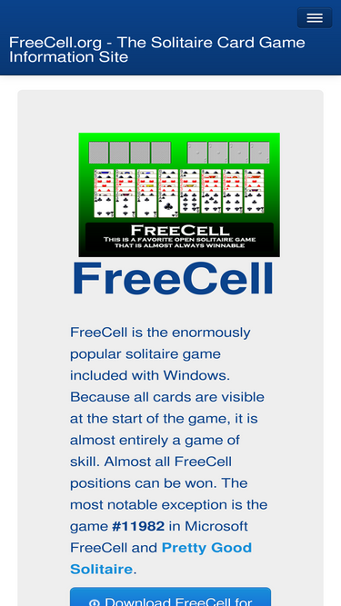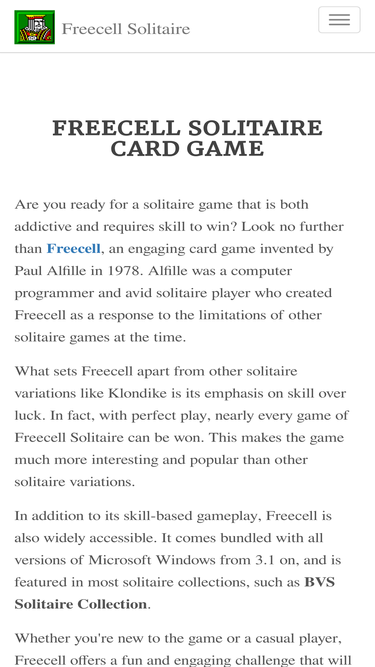 100%freecell.org is the site for information about the solitaire card game freecell. links to the rules of freecell, the history of the game, solutions to various positions, online freecell games, freecell computer programs, and more.