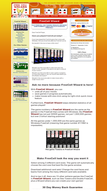 100%freecell wizard is a windows xp/vista/7/8 freecell solitaire game. it contains freecell, sea towers, and many other freecell type games.