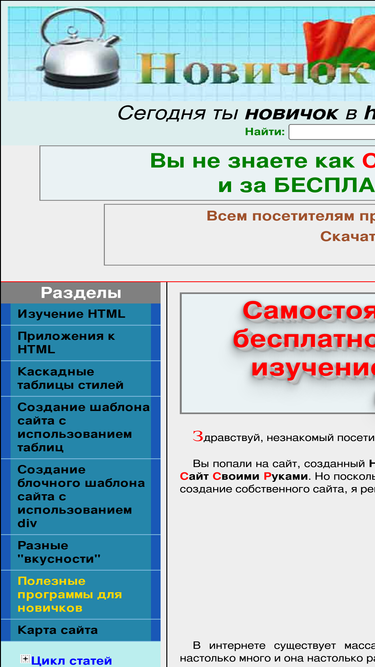 самостоятельное бесплатное создание сайта для новичков на основе изучения html и css. подробное описание тэгов html и css и способы их применения при строительстве сайта. статьи по раскрутке сайта.