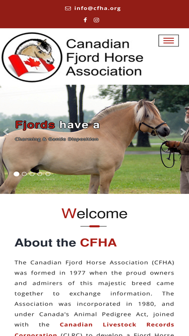 100%canadian fjord horse association. the mission of the cfha shall be to preserve the genetic purity of the breed through the registration of animals and the keeping of pedigrees.