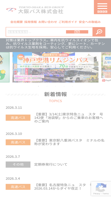 68%高速路線バス、観光バス、貸切バスのご用命は大阪バス株式会社へ。またちょっとしたお買い物、お客様の送迎、観光などお気軽にご利用頂けるタクシーもございます。お客様のご要望にお応えできるよう様々なサービスをご提供しておりますのでバス、タクシーをご利用の際は是非大阪バス株式会社へ。