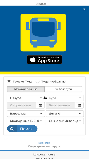 73%Цена билета: 190 BYN Путешествуйте на комфортабельном автобусе ECOLINES по маршруту Минск - Рига. Для просмотра точной цены билета и расписания на конкретный день, пройдите в систему продаж.