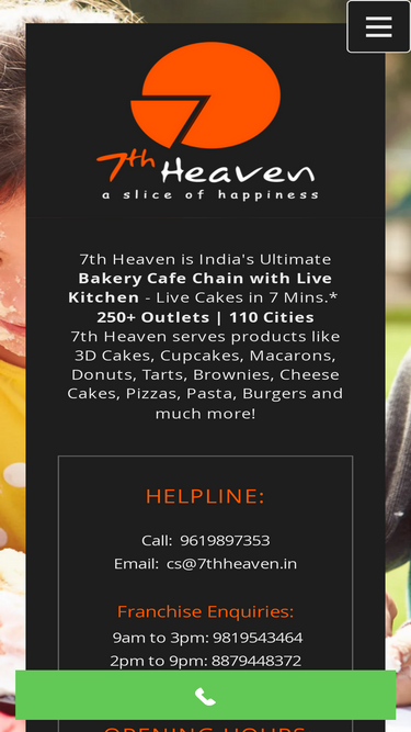 47%7th Heaven is Indian Bakery Shop which allows us to own a Franchise which provides bakery products like Cakes, Desserts, Brownie, Pizza, Pasta, Beverages etc.