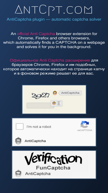 87%a browser extension for chrome and firefox, which automatically finds a captcha on a webpage and solves it for you. расширение для браузеров chrome и firefox, которое автоматически находит на странице капчу и в фоновом режиме решает ее для вас.