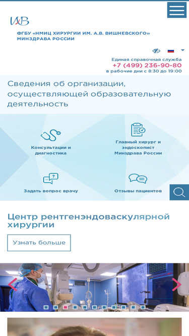 65%Национальный медицинский исследовательский центр хирургии им. А.В.Вишневского - крупнейшее лечебное и научно-исследовательское учреждение России. Институт располагает самым современным диагностическим и лечебным оборудованием.