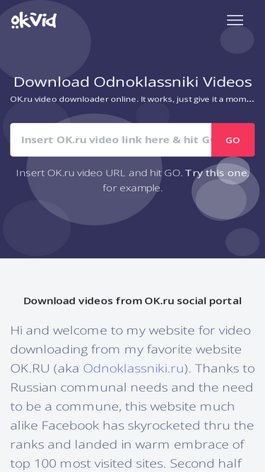 94%okvid is ok vid download which is odnoklassniki video downloader. does it make sense? download any type of videos from ok.ru social portal.
