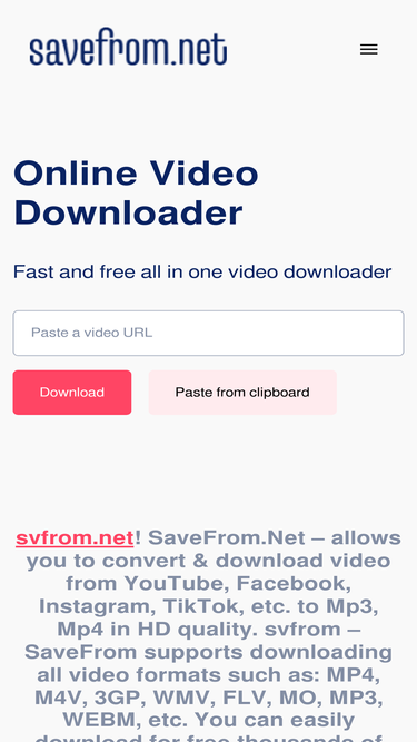 93%SaveFrom Video Downloader by SaveFrom.Net is an excellent service that helps to download online videos or music From Youtube, TikTok, Instagram.