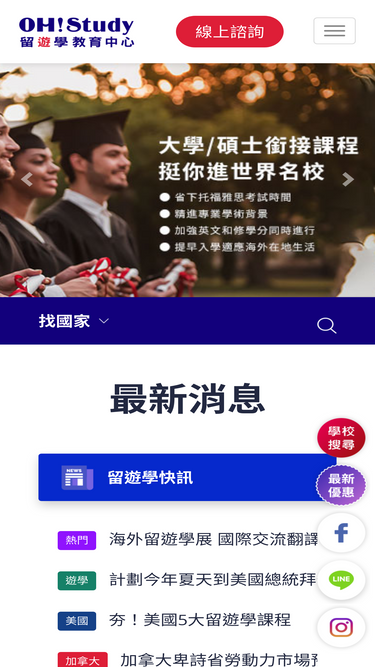 95%oh!study留遊學教育中心豐富代辦經驗,提供美國、加拿大、英國、歐洲、愛爾蘭、紐西蘭、澳洲、亞洲地區各國課程,大學、研究所、社區大學、中學、寄宿菁英中學、技職學院、證書證照、語言學校、遊學打工等專業服務,免費諮詢!