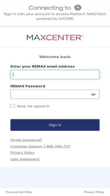 max/center login page