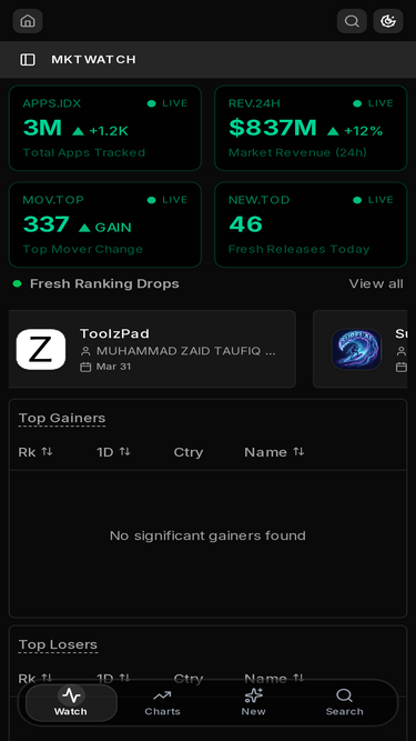 Track app ranking gains, losses and new entries across different countries and categories