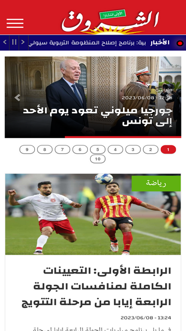 78%المغرب جريدة تونسية يومية مستقلة توجهها الفكري حداثي تونسي منفتح. أخبار تونس و العالم العربي : سياسة، إقتصاد، قضاء، شؤون عربية و دولي، رياضة، ثقافة و فنون، قضايا وأراء، بيئة، أرشيف تونس