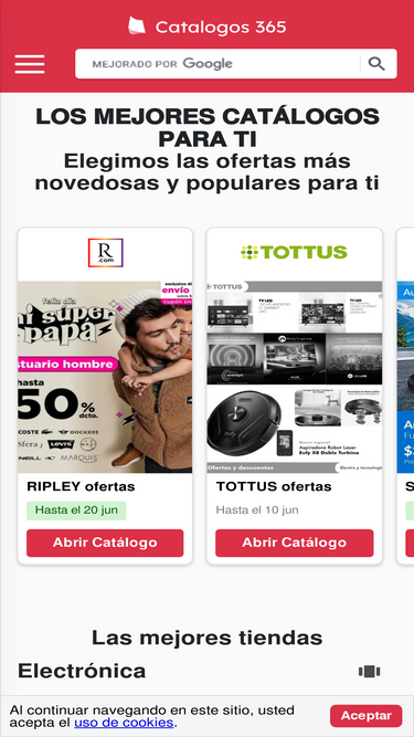 93%Catálogos 365 es el sitio con las mejores ofertas y catálogos de Chile. Descubre los mejores precios, ahorra en lo que quieres comprar y mira los catálogos de las tiendas con Catálogos 365