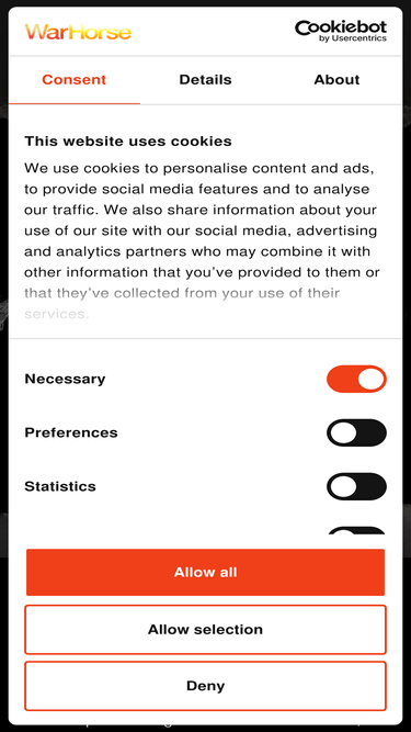 74%The National Theatre’s acclaimed production of War Horse returns in an all-new UK & Ireland tour. See this extraordinary story come to life on stage.