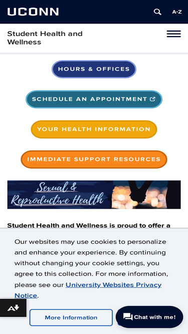 62%UConn Student Health and Wellness (SHaW) supports the optimal wellbeing of all UConn students by providing the highest quality compassionate care and exceptional health & wellness programs. Improve your health, stay active, find support, or feel better, the SHaW team is here to help and empower you.