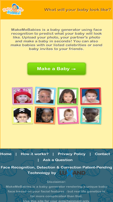 61%a baby generator using advanced face recognition technology to predict what your baby will look like. upload your photo, your partner's photo and make a baby in seconds!