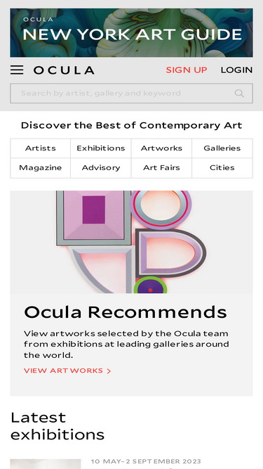 69%Ocula presents contemporary art exhibited by the world's leading artists and galleries, and reports on the people, ideas and events shaping art now.