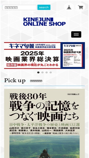 80%1919年創刊の映画雑誌『キネマ旬報』をはじめ、映画書、アジアドラマ関連ムックなど、キネマ旬報社の刊行物を取り扱う公式オンラインショップです。◆お届け日数ご注文から5営業日(土日・祝日以外)以内に発送いたします。なお、予約商品は商品が出来てからの発送になります。発送が遅れる際には別途弊社よりご連絡致します。◆送料について商品を2冊以上お求めの方は、送料の選択の際に「宅急便コンパクト」ではなく「ヤマト宅急便」を選択してください。なお、状況によって「エコ配」でのお送りとなることがありますのでご了承下さい。◆販売数量弊社では商品管理に細心の注意を払っておりますが、落丁・乱丁等が原因でお客様からご注文をお受けした後に、限定商品等はお届けできない場合がございます。その場合は、別途弊社よりご連絡致しますので、予めご了承下さい。◆返品交換落丁・乱丁の商品は商品到着後7日以内にメールもしくは電話にてご連絡下さい。商品到着後7日以上経過している場合やご連絡なく返品された場合は、返品交換をお受けできませんので、予めご了承下さい。