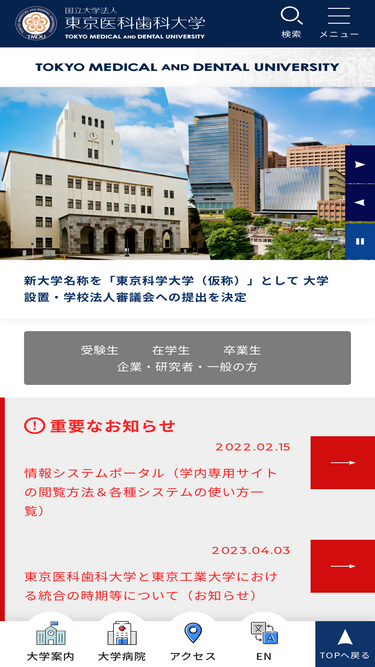 80%Official site of TMDU, Tokyo Medical and Dental University. TMDU is the national university located in the heart of Tokyo.