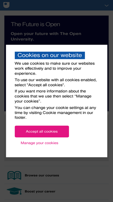 85%The Open University offers flexible full-time and part-time study, supported distance and open learning for undergraduate and postgraduate courses and qualifications.