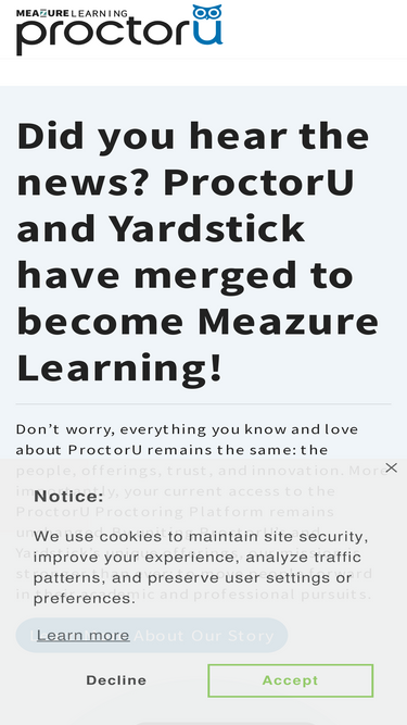 82%Get quick access to your ProctorU Platform account or technical support. As of Feb 28, 2022, all other content has been migrated to www.meazurelearning.com as a part of our rebrand to Meazure Learning.