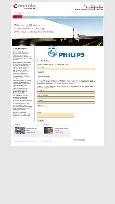 100%Discover Candela Corporation's extensive range of lighting and electrical products. Serving distributors with top brands and exceptional service for over 30 years.