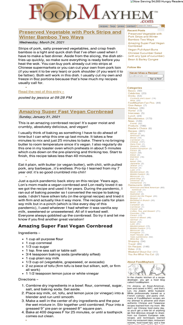 61%in a chaotic world of food, foodmayhem is bringing order. written from new york city (mostly), foodmayhem.com is all about... food! we love food: talking about food, writing about food, looking at food, taking pictures of food, making a blog about food, and, of course, eating food.